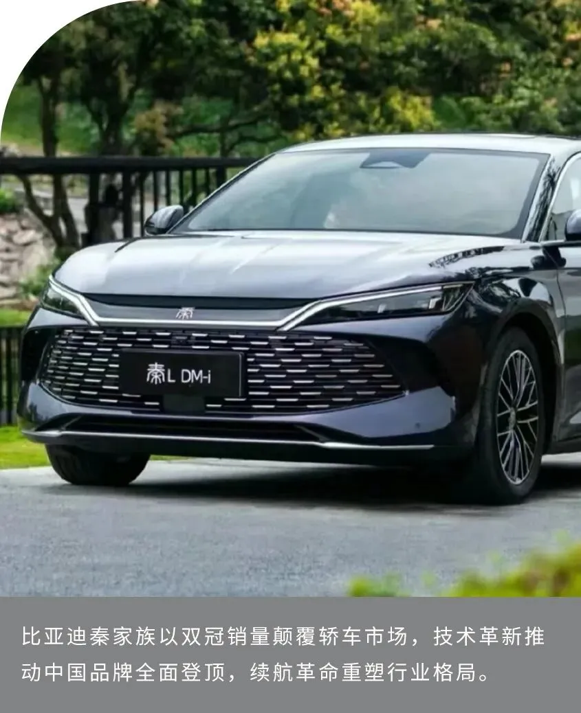 2025年秦PLUS以38万辆蝉联紧凑型轿车三连冠,秦L则以26完辆将中型车两连冠收入囊中,中国品牌由此首次在轿车核心细分领域实现全面登顶。