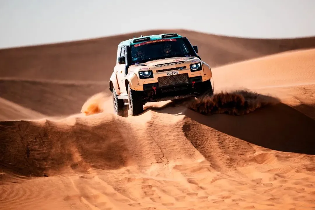 这种实力和技术的护城河,在2026年开年的两场全球顶级赛事中得到了最硬核的印证。在全球最严苛的达喀尔拉力赛中,路虎卫士拉力车队首次以厂商车队身份参赛,便包揽T2量产组冠亚军,13个赛段中10次包揽前三名,三辆卫士DAKAR D7X-R赛车在2.4万公里高温、沙暴、陡坡交织的极端地形中全部顺利完赛。