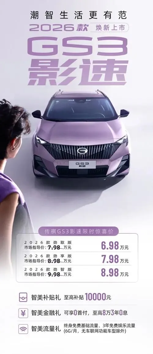 你有没有发现 最近身边聊车的朋友 开始频繁提起传祺GS3了?尤其是新款上市之后 6.98万起 这个价格 真的是有点让人心里打鼓 你说以前十万以内能买到啥像样的小型SUV?现在看这架势 GS3直接把门槛拉低了 估计不少人已经在琢磨 要不要冲一波了