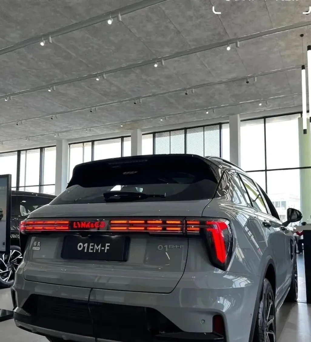 先.说外观,我这台.是一个灰银色.的,肉眼看真挺硬朗的。领克这个家族脸我一.直.挺熟悉的,分体大灯那种“小眯.眼”,见多了其实挺有辨.识度。然后它这个前格栅还是厚实那种,中网不是那种花哨.路线,看起来.反倒有点老派的稳.重.感。侧面车长4米5多.一点,比例还行,尾部的.贯穿尾灯还是蛮精神的,就是我个人觉得这车屁股稍微有点高,有点笨.重。轮毂这套是19寸的,样式可以,但.轮胎.宽度.一般,可能考虑节油吧。