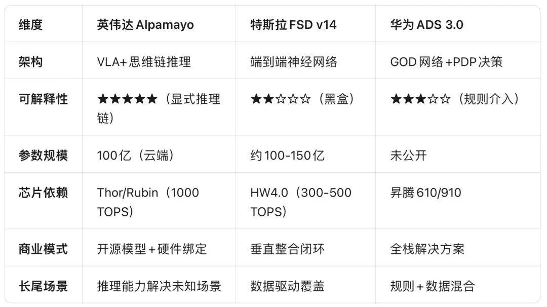 2.1 Alpamayo vs 特斯拉FSD vs 华为ADS