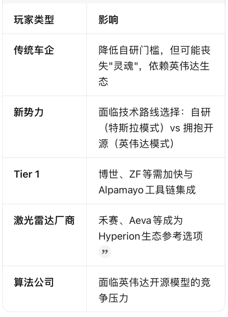 • 成本优化:开源模型减少车企自研投入,但增加对英伟达硬件依赖
