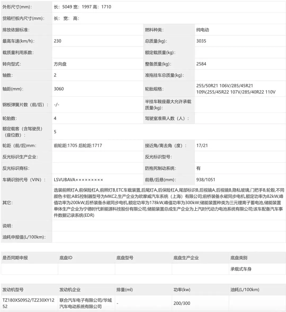 新车车身长度为5049mm,轴距为3060mm,除了提供五座布局之外,未来很有可能提供四座布局,以满足不同消费需求。