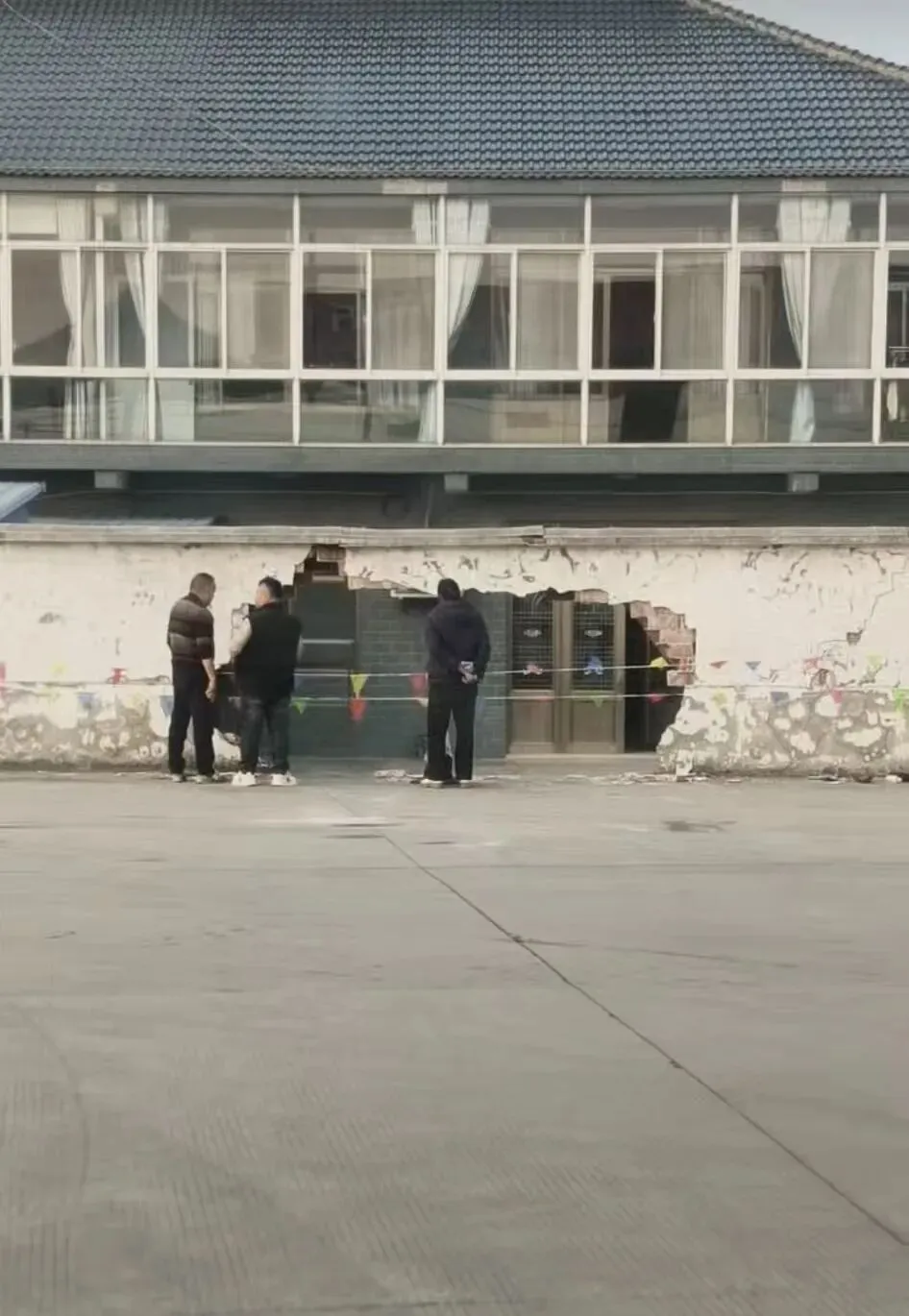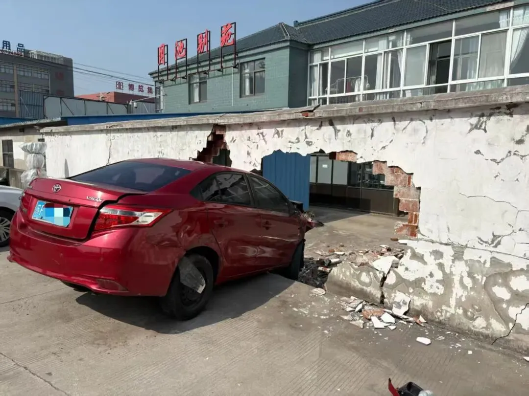 将围墙撞了一个巨大的洞