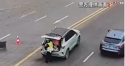 民警打开后备箱发现,居然坐了两名年龄分别为4岁和8岁的儿童,民警赶紧将两个孩子从后备箱里抱了出来。