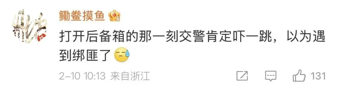民警询问后得知,原来,这家人返乡过年时,由于车里坐不下,家长便不顾危险,让两名儿童坐进了后备箱。