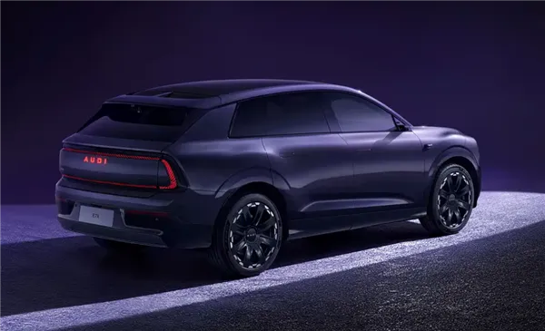 车身侧面采用溜背式线条,搭配隐藏式门把手与大尺寸多辐式轮毂,风阻系数进一步优化。车尾部分,贯穿式红色灯带与AUDI标识相呼应,尾灯内部采用网格纹理,与前脸设计形成呼应。