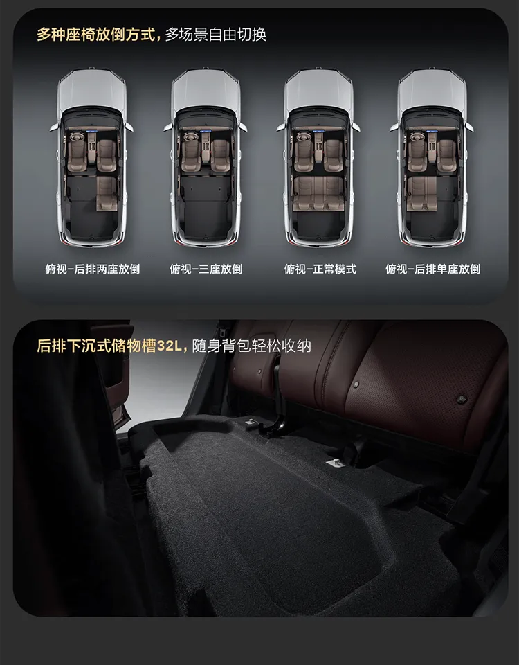- 最牛的是它的魔术座椅,坐垫往前一翻,靠背一倒,后备箱直接变全平双人床。