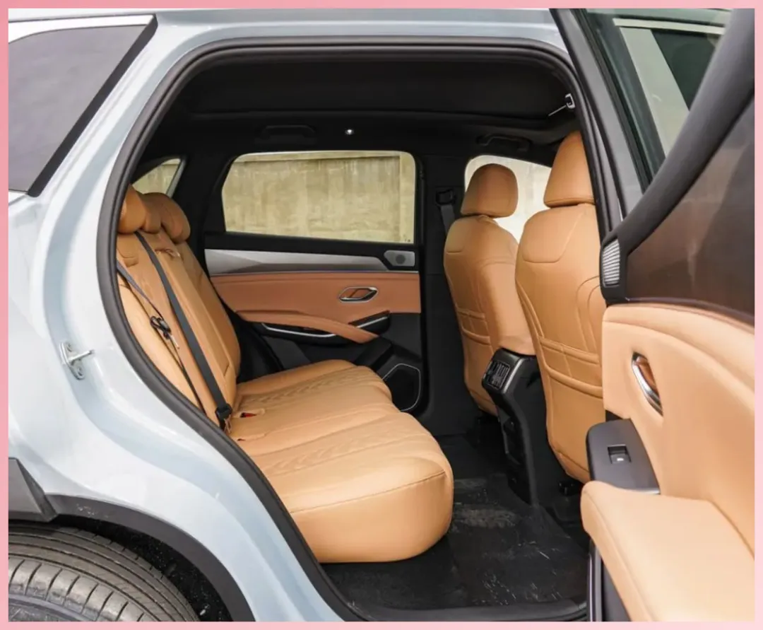 我把前排调到我的驾驶位置,再坐到后排看看。腿部空间可以随便伸展,完全不顶膝盖。后排座椅还能调节两档角度,往后一靠特别舒服,长途旅行后排乘客不会累。