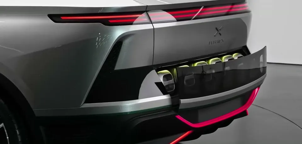 你能看出来这是什么能源类型的车吗?肯定不是燃油车对吧,第一感觉是电车。但你说巧不巧,当我看到后备箱那一排能抽出来更换的”东西”时,我以为是换电车型,