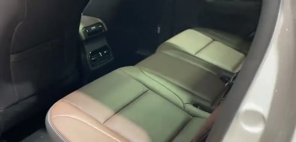 棕色座椅,中控台有三个圆形出风口,档把是电子档