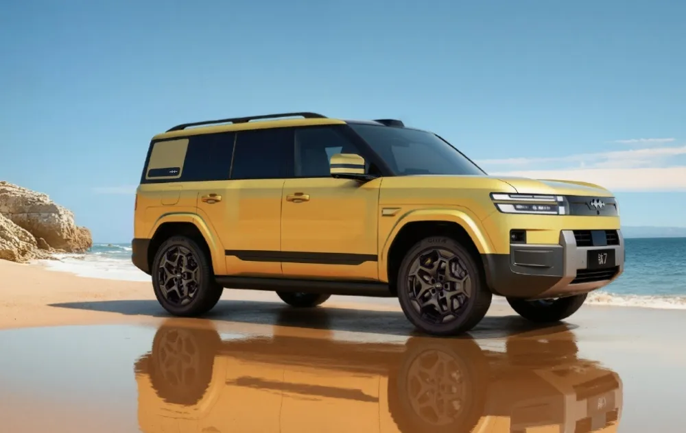 方程豹钛7车身尺寸为4999×1995×1865毫米,轴距2920毫米。方正的车身线条和近乎垂直的前脸设计赋予了车辆强烈的硬派气质,而细节处的圆角处理又避免了过于粗犷的视觉感受。