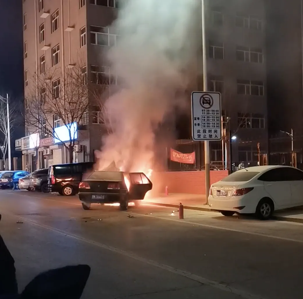 注意 | 平遥一小区门口黑色轿车自燃,消防紧急处置!