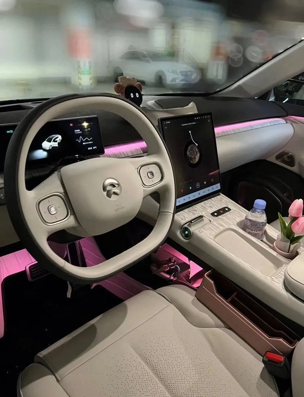 然.后我进到车里,第一反.应就是——蔚来.这次.终于不那么“木讷”了。中控大屏.响应速度特别快,用的是高.通8295芯片,比上一代那种“点一下.卡半.秒”的情况好多了。这个我自己试着划.了几下.地图界面,属于那种跟.手的感觉。然后车机.界面.换成了.简.洁白底,比以前那个灰蓝更精神。内.饰材质嘛,中.控.台上部是软皮,下部是硬塑,但拼接还行,没有什么大缝。不过我还是想吐槽一.下副驾储物格,那块盖板的阻尼感完全.没有,啪.一关特廉价感,真心希望蔚来改改。