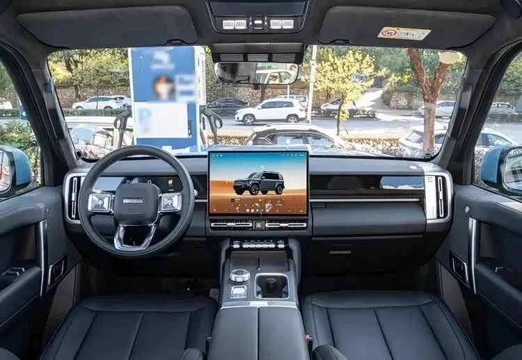 车内配置很有特色,全液晶仪表、大尺寸中控屏、手机无线充电这些常规配置都有,还带制氧系统和飞机油门杆式换挡机构,仪式感拉满。针对越野场景,副驾有专属屏幕,能实时显示方向、姿态、海拔这些信息,相当于带了个“领航员”,野外开车更安心。