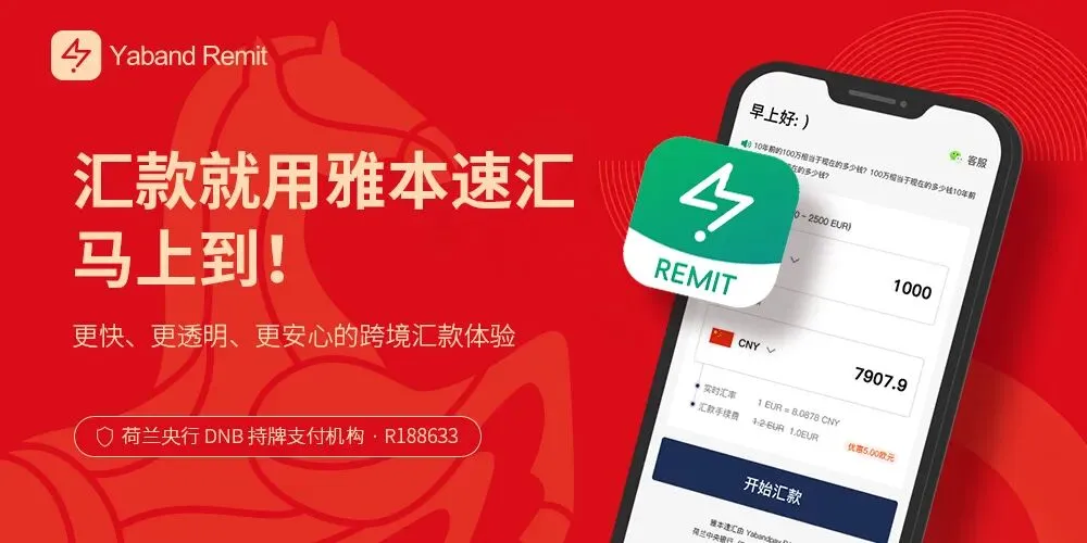 从荷兰汇款到国内几乎秒到账,第一笔免手续费