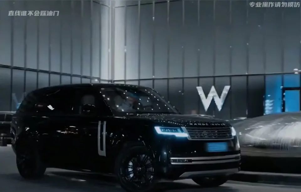 白色路虎揽胜汽车在仓库行驶