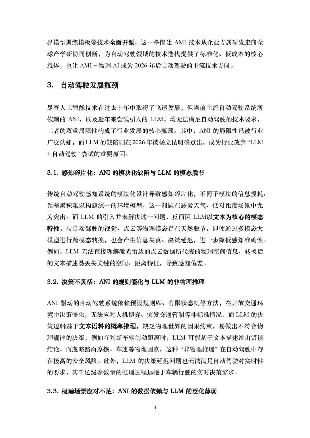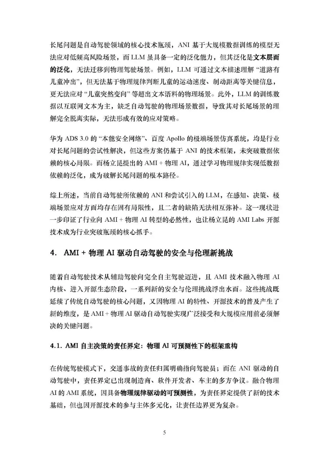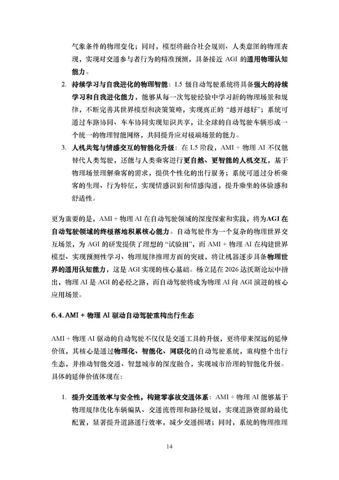 长期(2035-2040):构建全域物理世界模型,实现通用物理认知与系统自我进化,迈向 L5 级完全自动驾驶,同时车辆具备人机情感交互能力,且该技术为 AGI 在自动驾驶领域的落地积累核心能力。