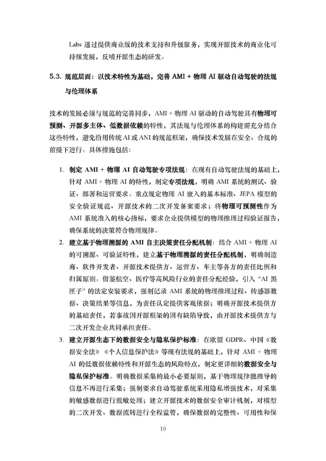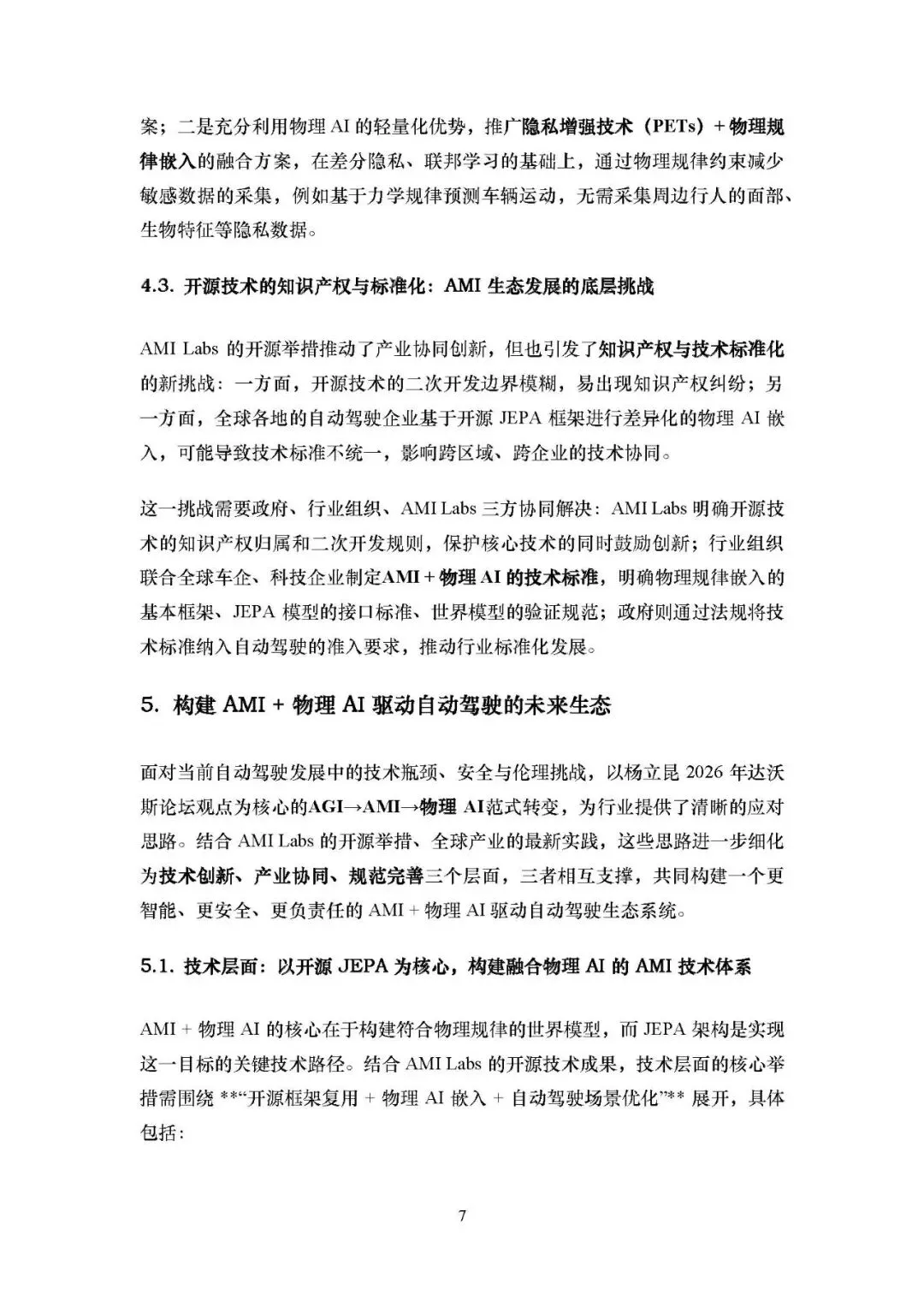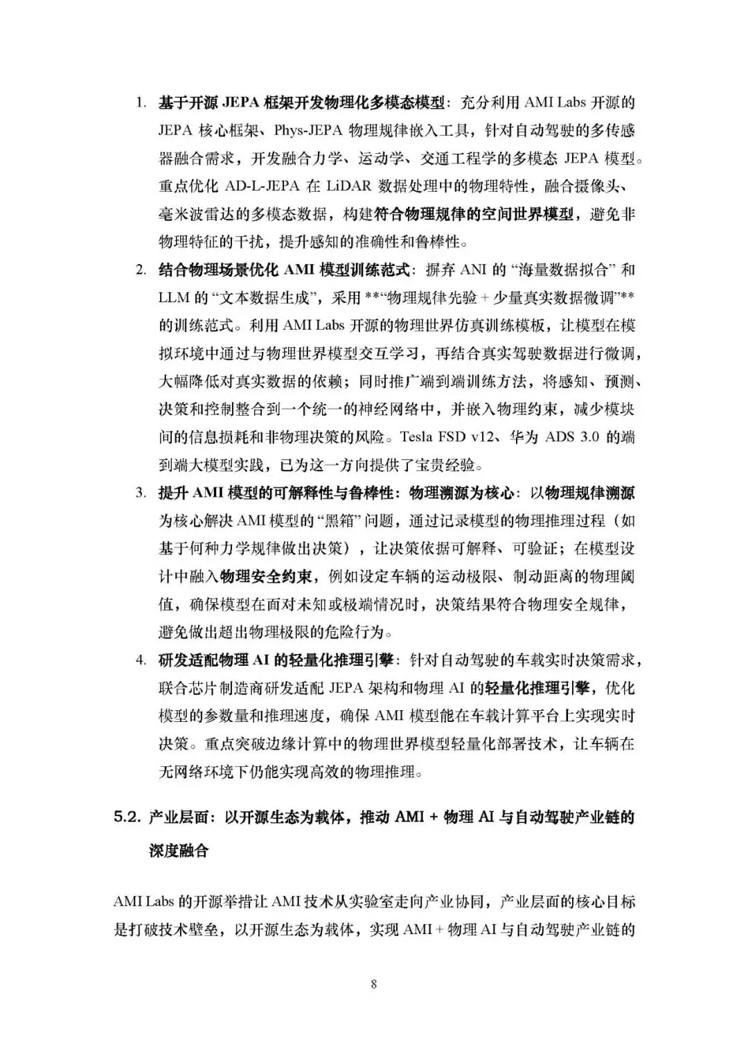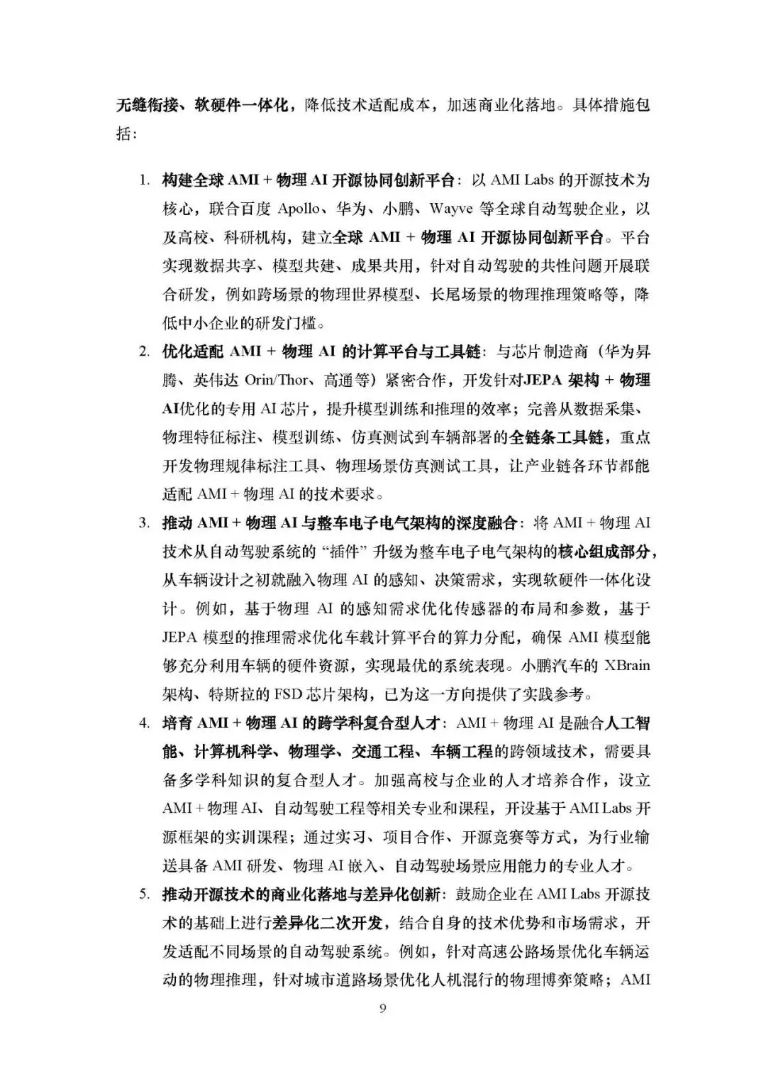为推动 AMI + 物理 AI 在自动驾驶的落地,需构建技术、产业、规范三位一体的生态系统: