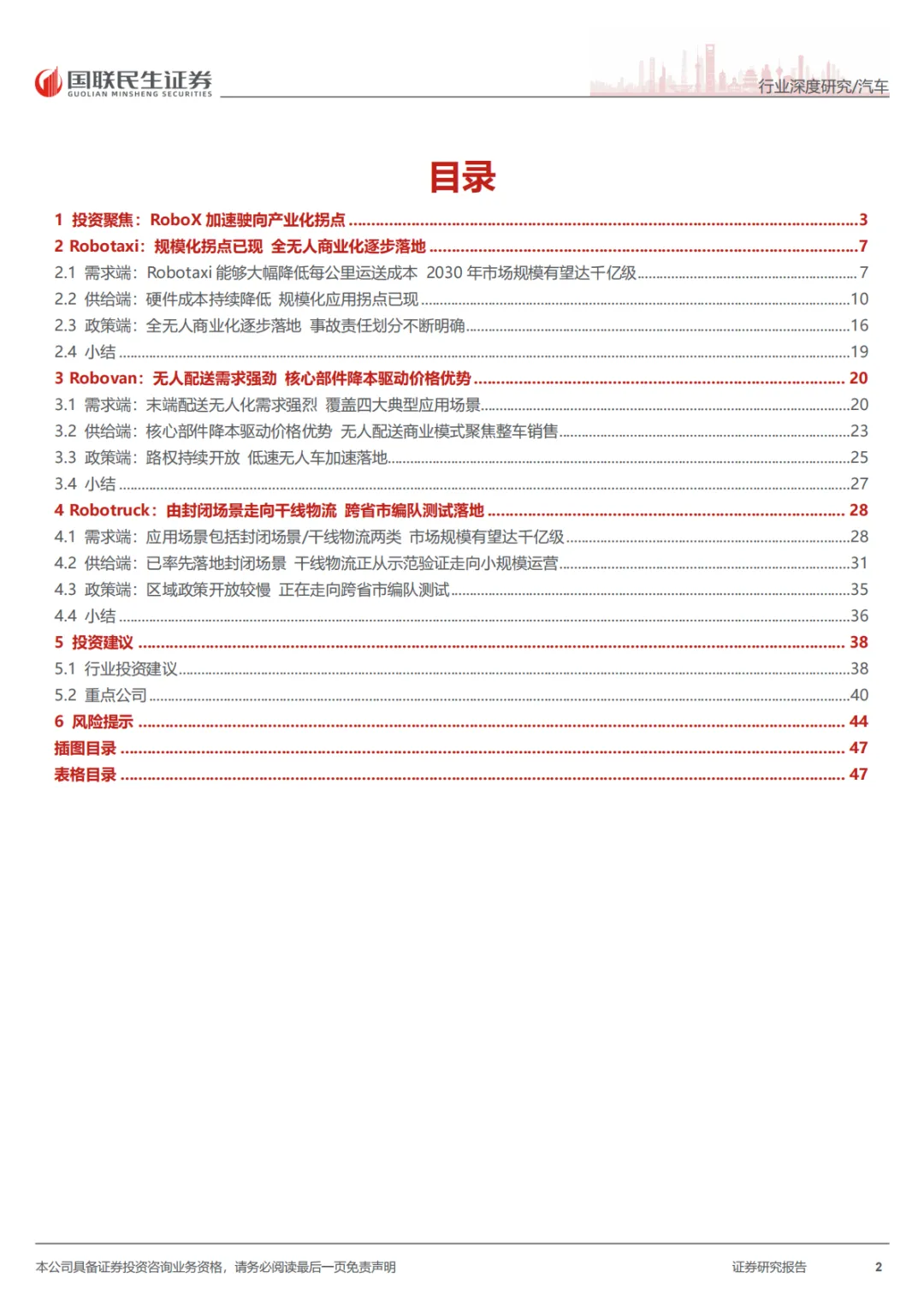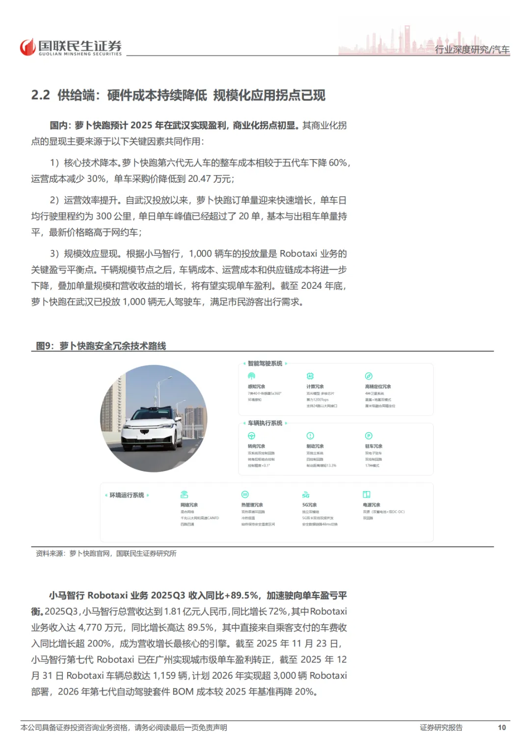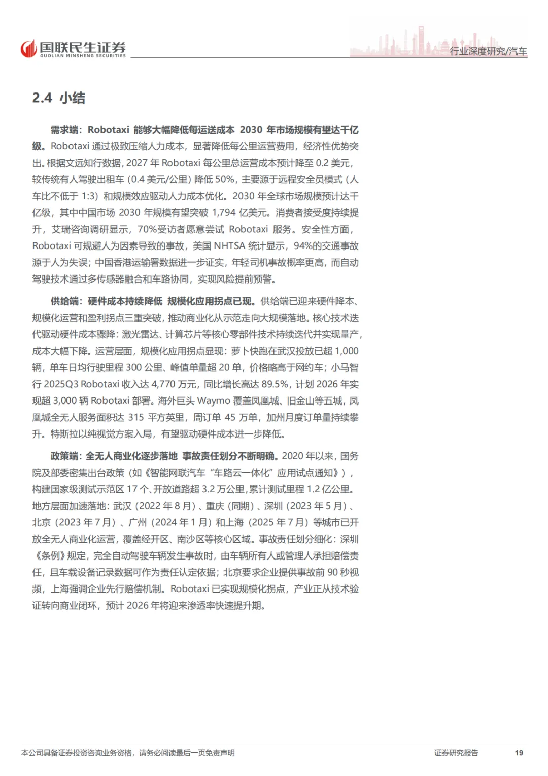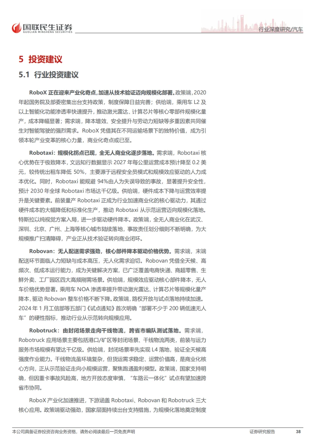 这份报告的核心就一句话:RoboX(各类自动驾驶车辆)已经到赚钱的拐点了,不再是PPT和路测玩具了。具体看三个方向:Robotaxi(无人出租车),成本打下来了,2027年每公里运营成本能降到0.2美元,比现在便宜一半。武汉、北京这些城市已经能跑全无人收费服务了。Robovan(无人配送车),解决快递、外卖“最后五公里”的用人荒,关键是车价从50多万降到了2万块左右,能大规模铺开了。Robotruck(无人卡车),先从港口、矿区这些封闭地方干起来,现在正往跨省干线物流上试,长期看市场能到几千亿。总之,政策、技术、成本都到位了,行业开始从烧钱测试转向真金白银的商业化。
