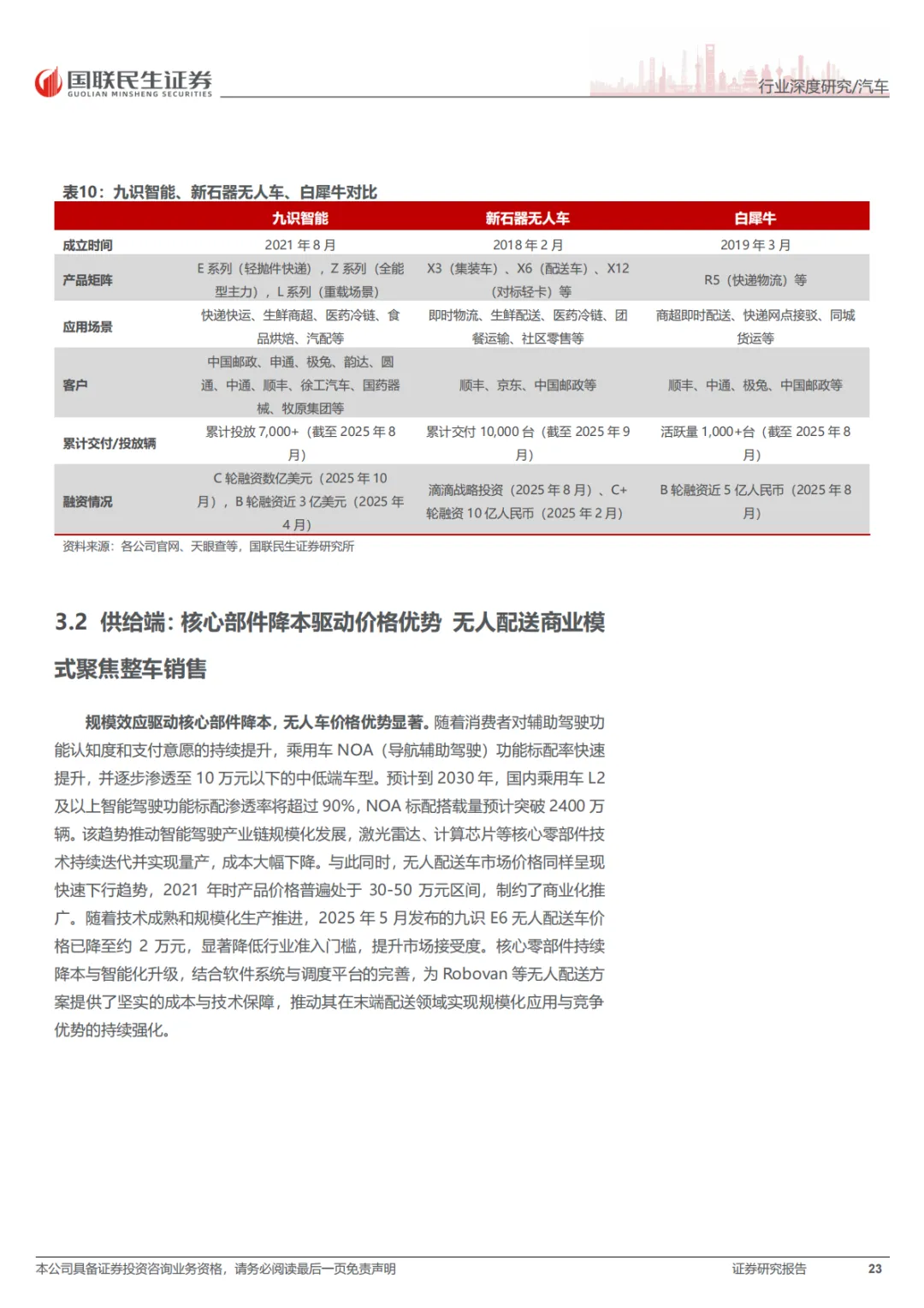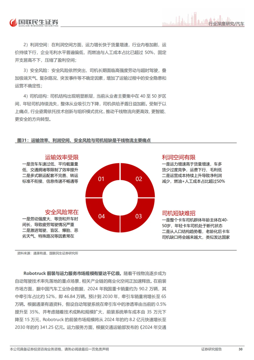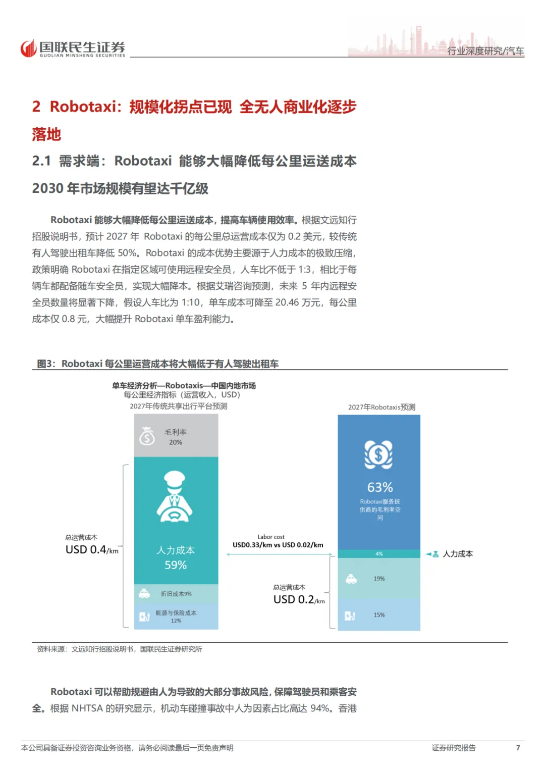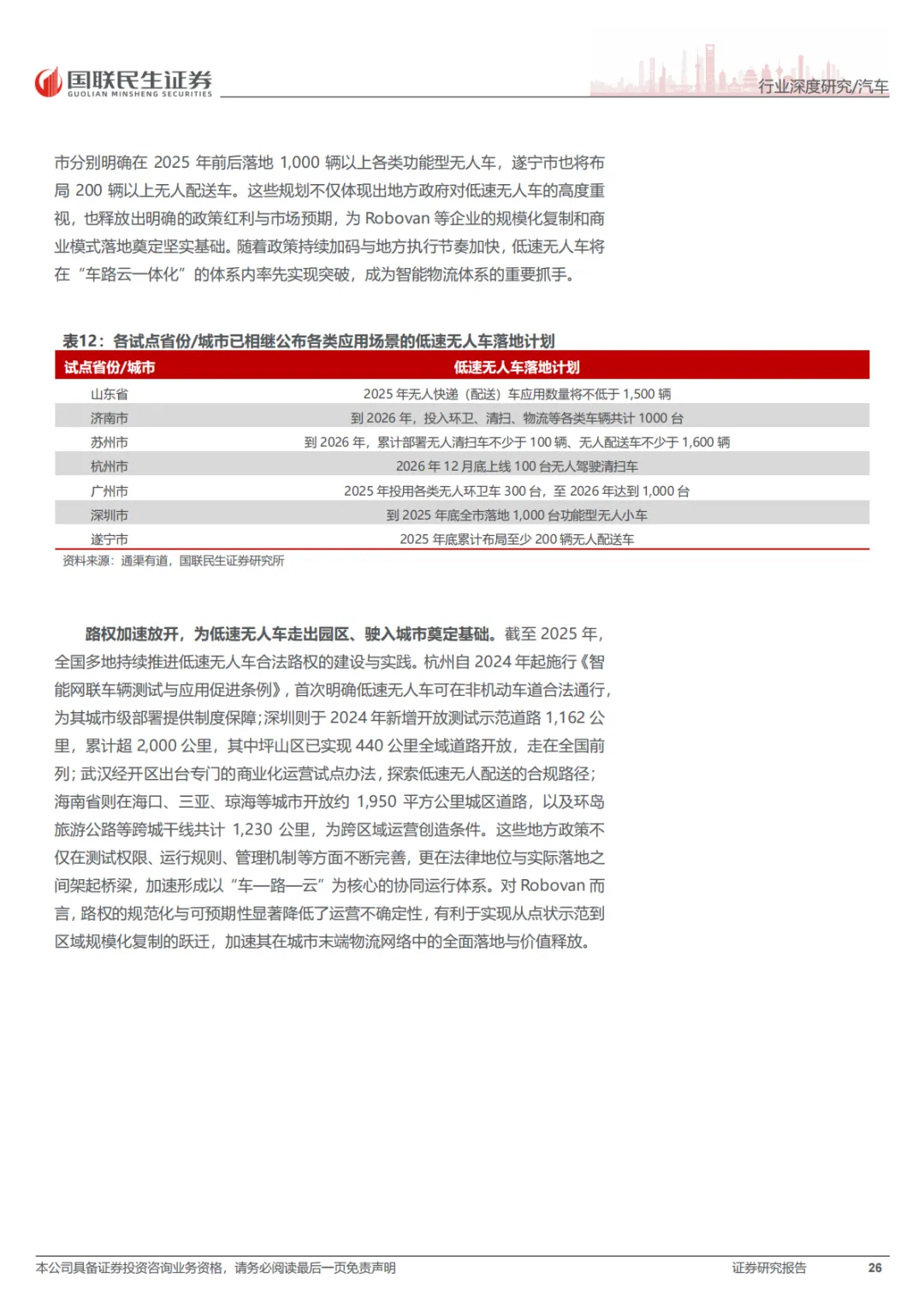 这份报告的核心就一句话:RoboX(各类自动驾驶车辆)已经到赚钱的拐点了,不再是PPT和路测玩具了。具体看三个方向:Robotaxi(无人出租车),成本打下来了,2027年每公里运营成本能降到0.2美元,比现在便宜一半。武汉、北京这些城市已经能跑全无人收费服务了。Robovan(无人配送车),解决快递、外卖“最后五公里”的用人荒,关键是车价从50多万降到了2万块左右,能大规模铺开了。Robotruck(无人卡车),先从港口、矿区这些封闭地方干起来,现在正往跨省干线物流上试,长期看市场能到几千亿。总之,政策、技术、成本都到位了,行业开始从烧钱测试转向真金白银的商业化。