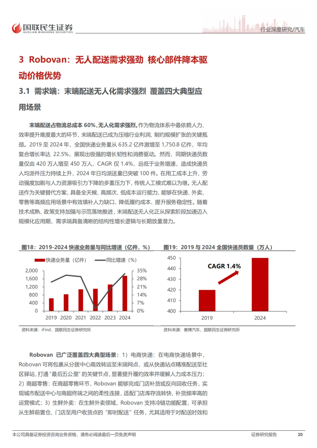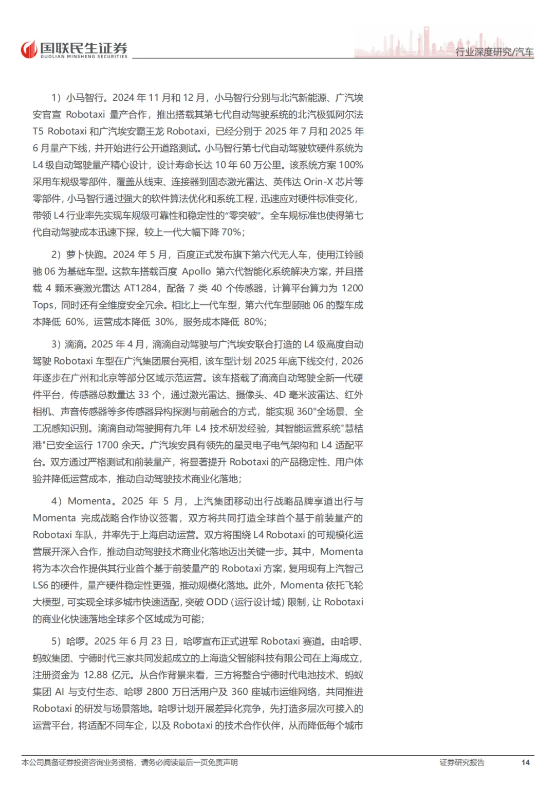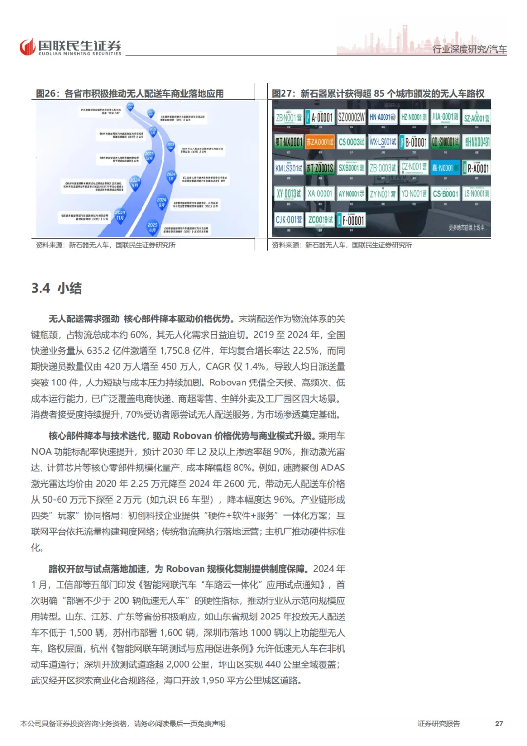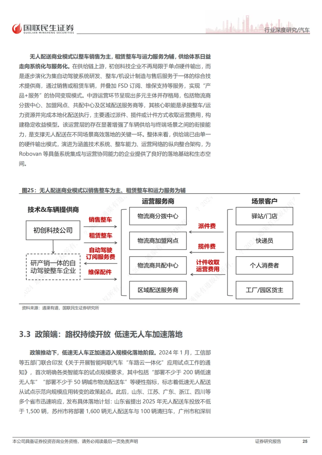 这份报告的核心就一句话:RoboX(各类自动驾驶车辆)已经到赚钱的拐点了,不再是PPT和路测玩具了。具体看三个方向:Robotaxi(无人出租车),成本打下来了,2027年每公里运营成本能降到0.2美元,比现在便宜一半。武汉、北京这些城市已经能跑全无人收费服务了。Robovan(无人配送车),解决快递、外卖“最后五公里”的用人荒,关键是车价从50多万降到了2万块左右,能大规模铺开了。Robotruck(无人卡车),先从港口、矿区这些封闭地方干起来,现在正往跨省干线物流上试,长期看市场能到几千亿。总之,政策、技术、成本都到位了,行业开始从烧钱测试转向真金白银的商业化。