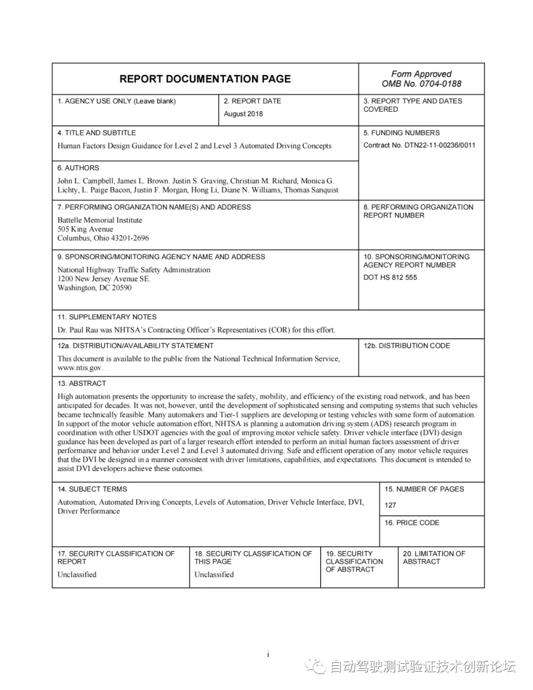 人类驾驶在自动驾驶汽车的可能角色自动驾驶向手动接管过渡的人为因素研究NHTSA 人机交互界面的人为因素设计指南