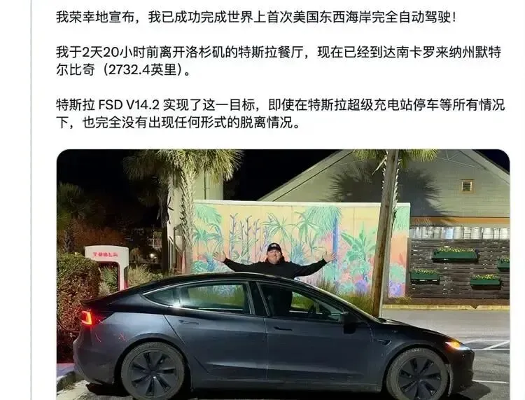 特斯拉干了件让所有新势力车企集体失语的事:4397公里,全程0接管,从洛杉矶一路飙到南卡罗来纳州!这数据,够他们吹到明年,但为啥不敢提?我懂,那种被系统坑到想砸方向盘的绝望。