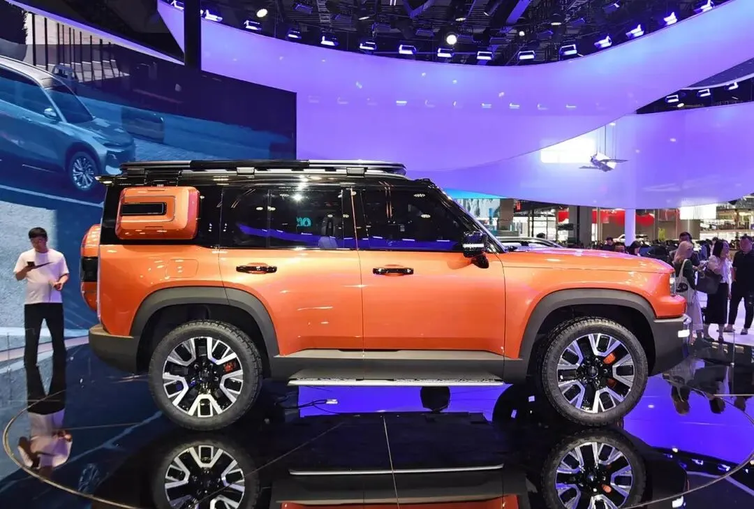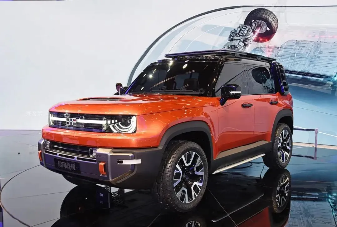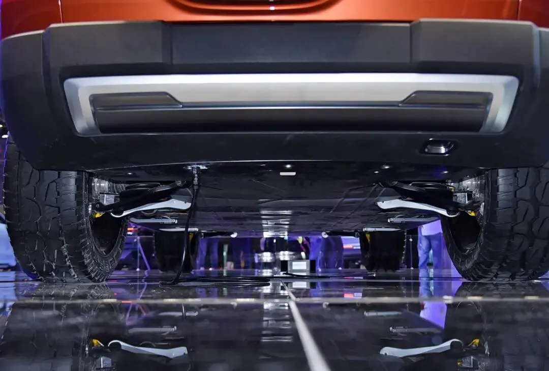 再看吉利银河战舰。吉利SUV多,越野车还真没正经发过,这次算不算破题。整台车一股硬派味,外凸前后杠,粗壮行李架,后挂备胎,侧爬梯,停路边就像要去穿林子。细节也狠,蟹行模式能横着挪,原地掉头转身快,轮胎炸了还能顶着走一段,遇到小障碍还能连续自动绕避,涉水深度标到800毫米,下雨过沟心不慌。底盘照片看了,铝合金件不少,簧下质量轻一点,悬架强度提一点,开起来更紧实,越野冲击也扛得住,这些配置堆上去,你说诚意够不够。