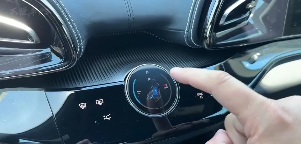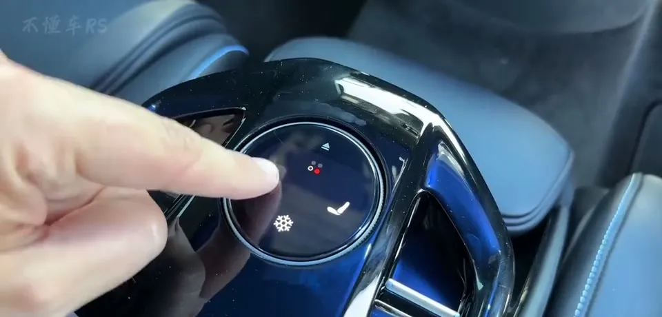 ,还可调节座椅通风及加热。操作方法也简单,选中小姐姐坐的那一边后,按下顶部这个箭头,旋钮就会弹出,旋转调节冷热即可。
