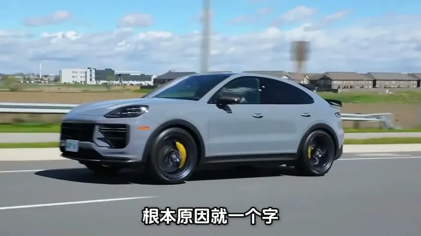 灰色保时捷轿跑SUV在道路上行驶,展示其运动感和设计。