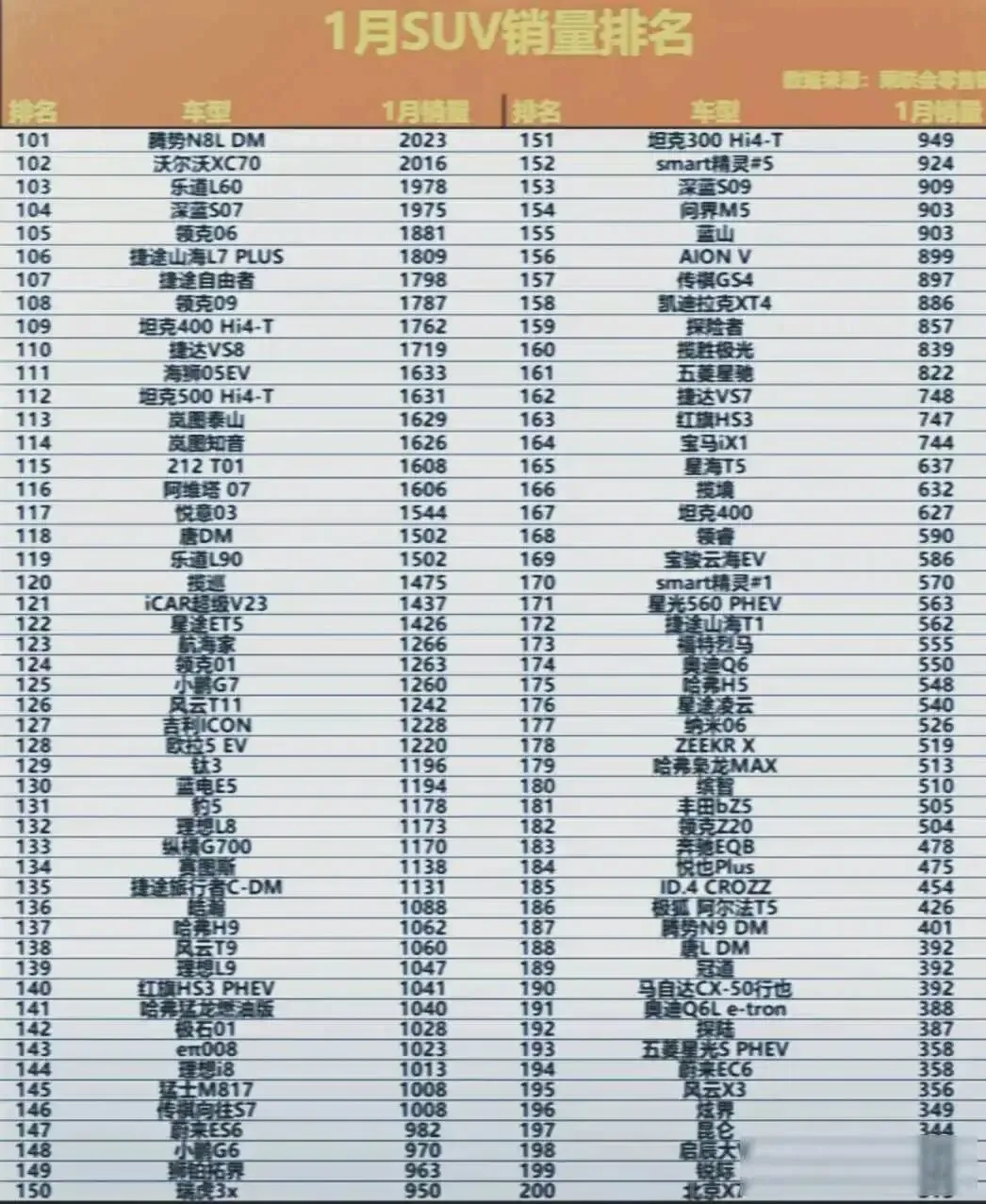 中间那段情况最糟糕,从排名第21的传祺GS3卖出去九千多辆,到第一百名的智己LS6,八十多款车挤在月销两千到九千这个区间里抢市场,这地方本来是自主品牌的地盘,现在被新能源低价车和不断降价压得很难受,混动车型像腾势N8L DM和沃尔沃XC70勉强卖出两千多辆,坦克300 Hi4-T、问界M5这些曾经热卖的车型,现在每月销量不到一千,用户不再为硬派或者智能这种标签花钱,更看重实际用车体验。