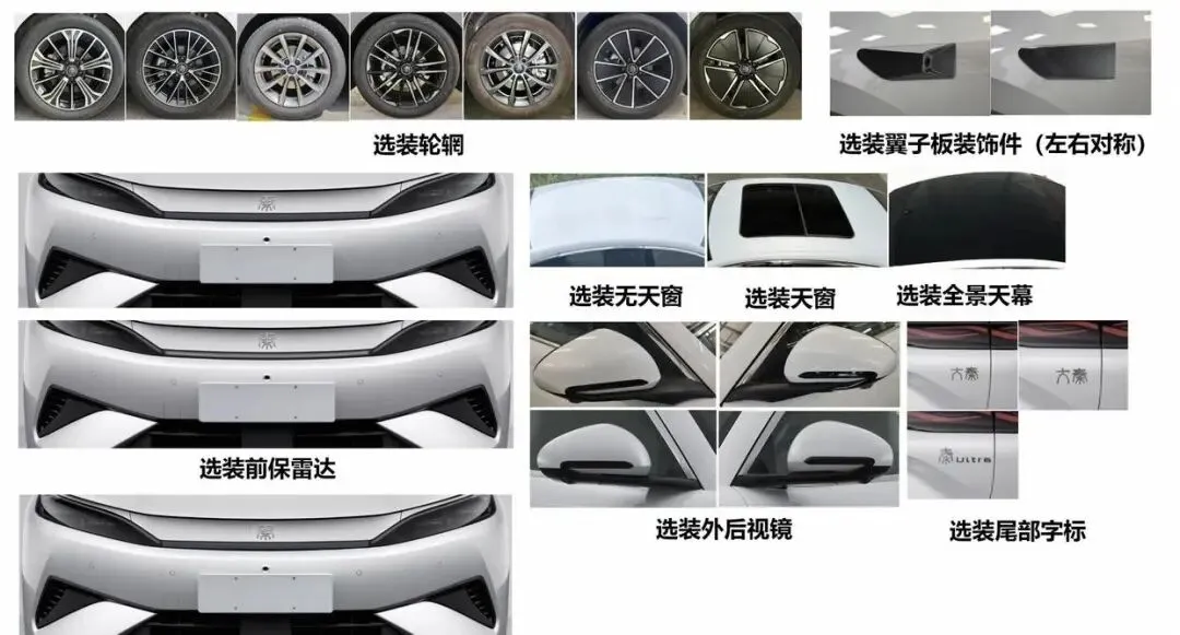 申报信息显示,秦MAX提供了多种选装配置,这一点特别贴合家庭用户的个性化需求。不同样式的轮毂、全景天幕以及“大秦”“秦Ultra”两种尾标都可以根据喜好选择。像全景天幕这样的配置,平时带孩子出行时,孩子可以透过天幕看天空,能减少长途乘车的枯燥感,不过后续也建议厂家考虑配备可调节遮阳帘,避免夏季暴晒。