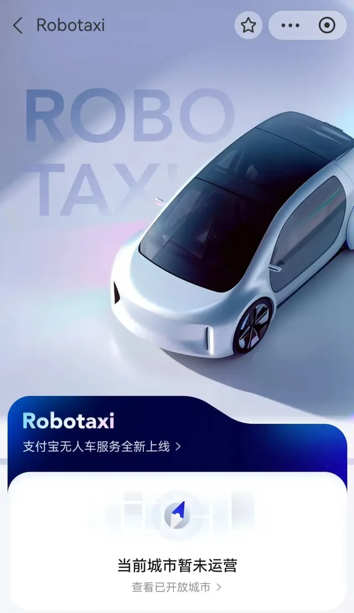 以后打“无人车”不用单独下APP了!支付宝悄悄上线 Robotaxi 小程序,直接聚合主流自动驾驶品牌,这波操作太懂懒人了。