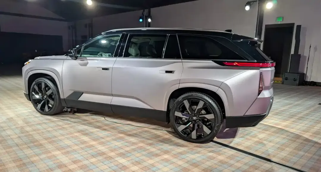 除了动力形式的彻底颠覆之外,全新纯电汉兰达在内外设计上同样是和现有车型完全不一样的感觉。首先,新车全身都是锋利的线条,粗犷感十分在线,这既和以往燃油版汉兰达的设计风格大相径庭,又和现在主流的新能源车型背道而驰,只能说是十分大胆了。车头设计上采用了现在丰田标志性的C字形日行灯,贯穿式LED日间行车灯和下包围的梯形进气口,都进一步增加了新车的横向宽度。