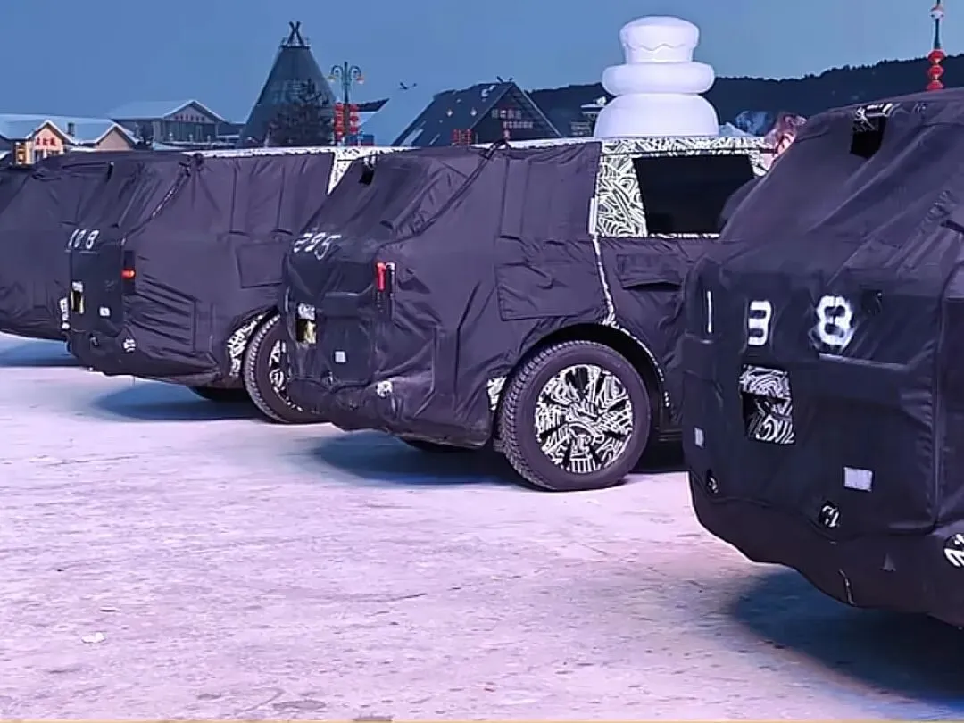 领头的几辆车裹着厚厚的伪装,但从轮廓依稀能辨认出——这是小米还没发布的新车。