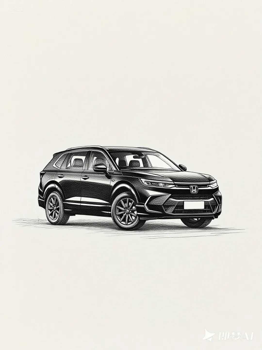 本田皓影呢,比CR-V更年轻一点。前脸更扁,线条更利落。黑色车身配上熏黑轮毂,有点小运动气质。
