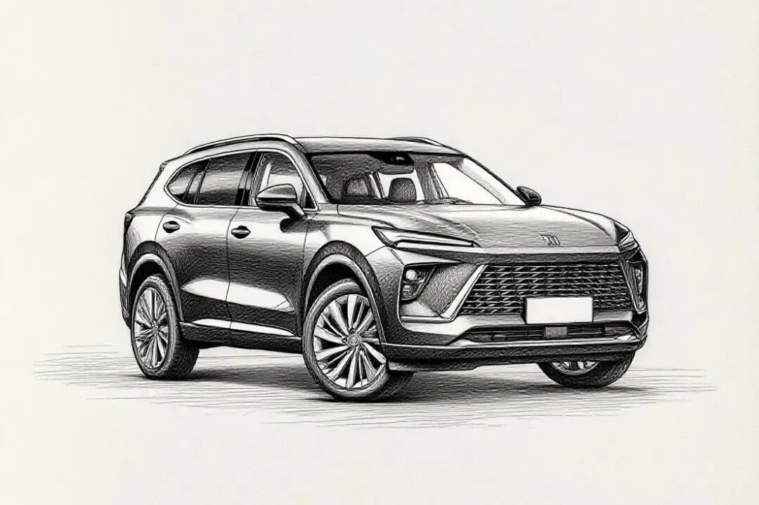 国产新秀,图片风格看着有点偏新能源/大马力那路子,但素材里完全没提是燃油还是混动、插混,我就不编故事了。只能说,照现在国产SUV的大趋势,**要么动力参数巨好看,要么油耗数据巨好看**,反正会有一个点专门刺激你下单——这个属于营销必修课。