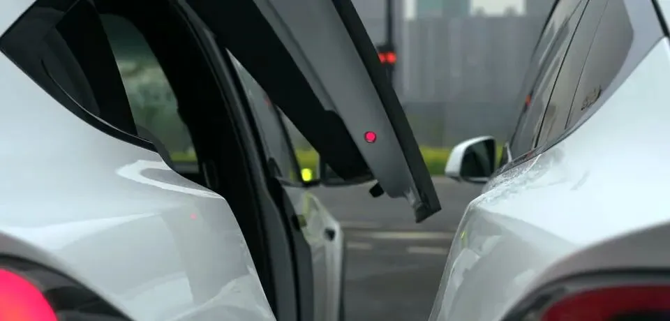 还有那个超声波传感器,世界上第一款可以穿透金属的。它能确保在高度受限的情况下,鹰翼门尽量开到最大,却又不蹭伤车漆。