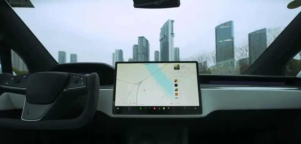 X直接来了个大翻身:移除换挡杆、Autopilot辅助驾驶挡杆、空调出风口,换上全新Yoke方向盘,加上横置大屏——而且它可以左右摇摆。