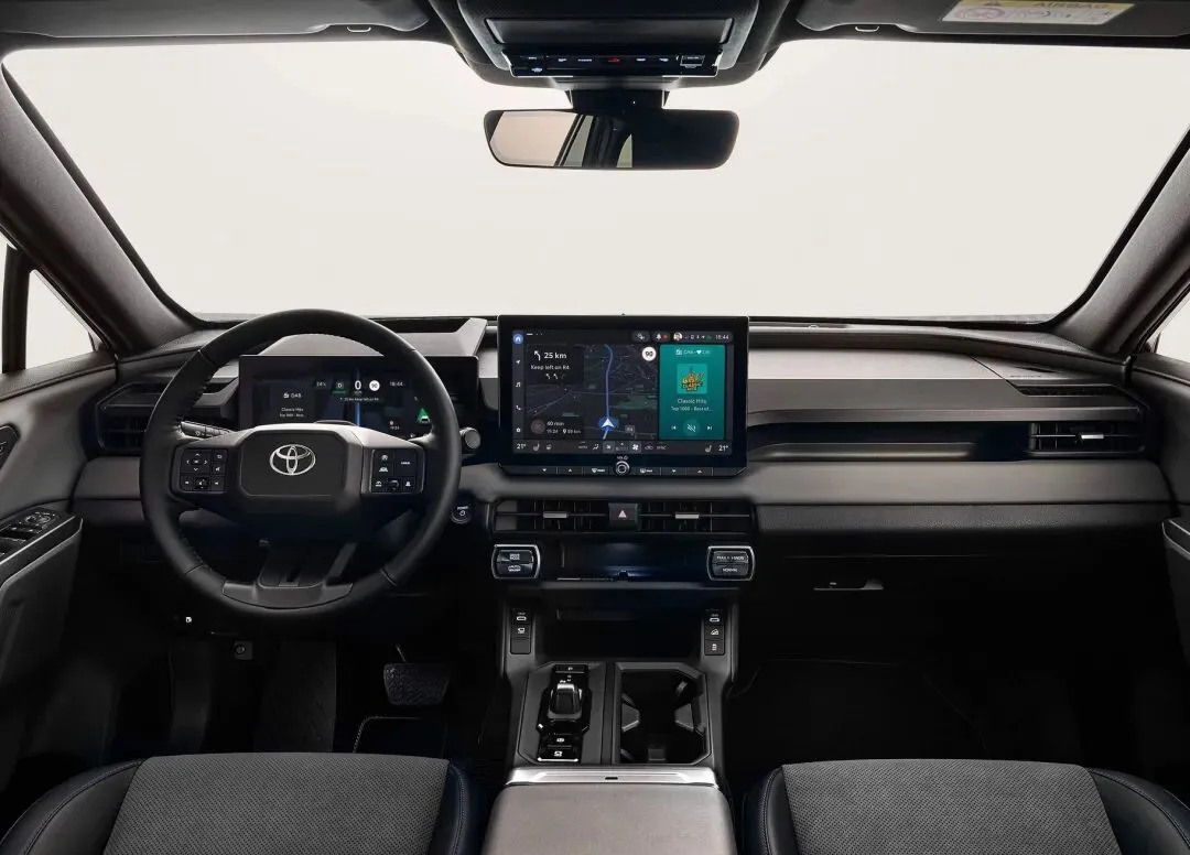 进去车内之后第一感觉.就.是——丰田终于舍.得堆料了。中.控这.块15.6英寸的大.屏我一开始还有点担心反光的问题,实际上看下来.亮度和色.彩都还不错,搭载了骁龙8155芯片,响应是真的快,完全不是你印象里的那种“卡卡的丰田”。我现在轻.轻敲一下这个中控.台,上层是软质包裹,下部稍微硬一点,但整体质感比老.款好了不止.一截。方向盘的手感是一个偏厚实.的,皮.质算细.腻,不打滑。