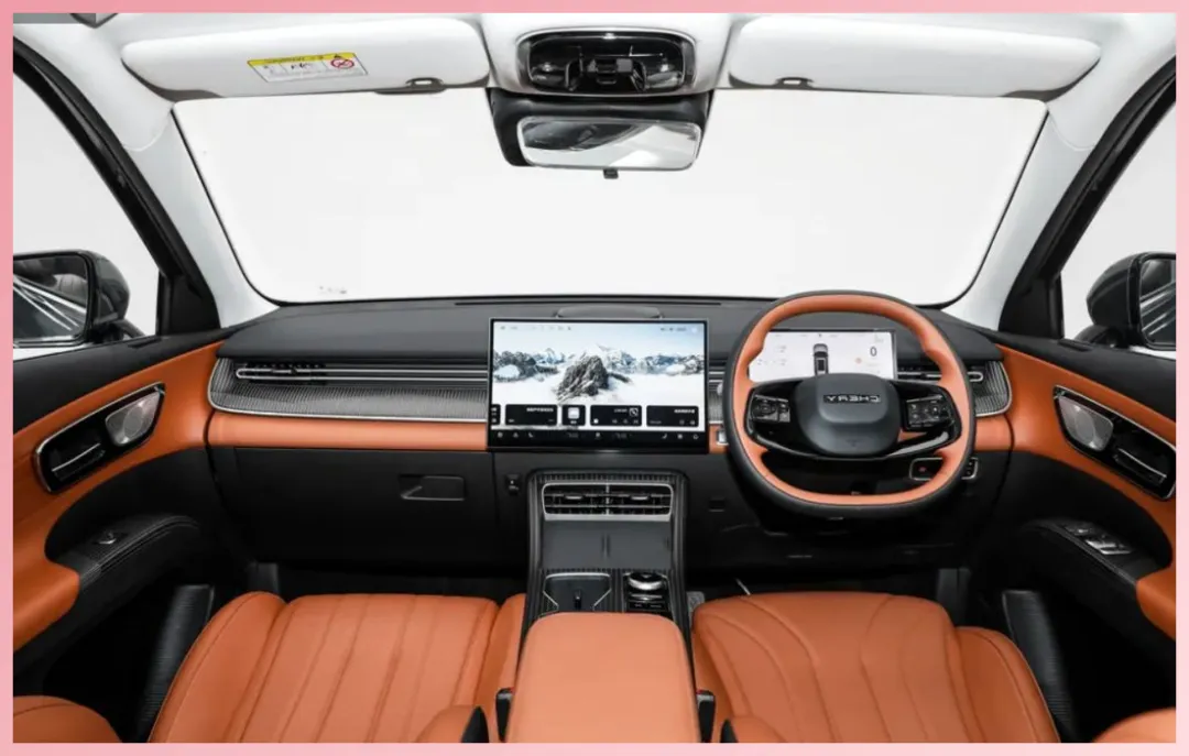 前排方面,拉丝饰板与瑞虎9同款,质感不错。音响周围有镀铬套件点缀,提升了金属感和豪华感。前排无线充电和驾驶模式选择按键齐全。