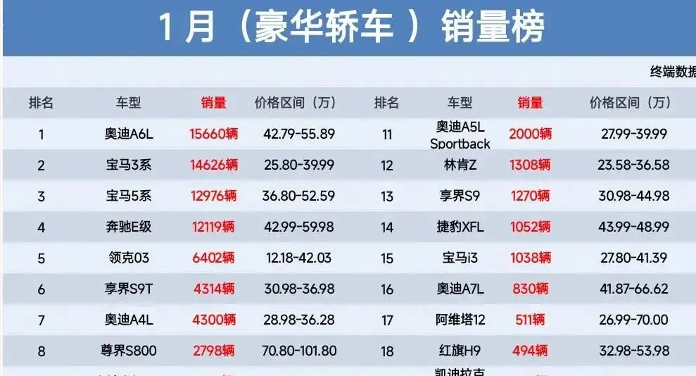 说实话,看到1月豪华车销量榜时,我手里的咖啡差点泼在键盘上。