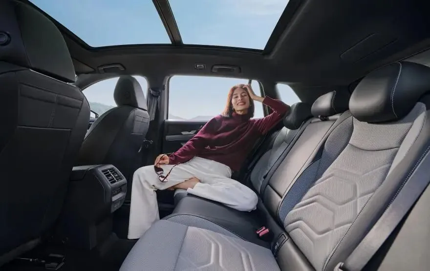 车身设计上,该车采用短车身、长轴距的布局思路,车身长度约4.65米,轴距却达到2.78米,这样的设计旨在最大化车内空间。实测数据显示,前排头部空间约980毫米,后排腿部空间最大可达950毫米,后排乘坐三人时横向空间也不会过于局促,后备箱常规容积为480升,放倒后排座椅后可扩展至1250升,能满足家庭用户装载行李、婴儿车等物品的需求。底盘方面,该车采用前麦弗逊式独立悬挂+后多连杆式独立悬挂的组合,调校偏向舒适取向,能较好地过滤路面细小颠簸。