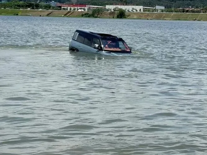 触发.逻辑大概就是。涉水.到一定深度。系统.进入应急模式。发动机自动关.闭。悬架升高.。车窗自动.关。空调内.循环。然后靠.四个轮子转动“划水”。水面速.度官方给到3km./h。还能转向.。甚至.原地掉头。
