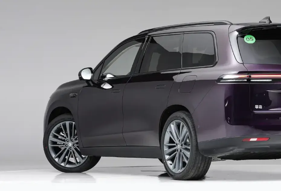 那车漆上也有了很多选择,尤其是紫色版本深受大家喜欢,如果单从侧面来看零跑C16依旧很高大霸气,给人第一眼感觉就是高大,毕竟它的车长也是来到4915毫米,轴距来到2825毫米。那轮毂造型我觉得很一般,好在尺寸上比较有看点,也是来到20英寸,所以车身轮廓特别显高。后排普及了隐私玻璃、黑色饰条,我觉得现在黑色版本更霸气,有一种黑武士的感受。而且侧面的饱满度与车尾相呼应,也有了媲美理想L9的能力。尾灯组现在来看很普及,只是说动态效果存在差异化,包括现在国产车的尾部造型几乎差不多,只是空间与舒适上有区别、而零跑C16也是支持选装软硬悬架,不过我觉得要不要都无所谓,因为零跑C16入门级的车身姿态就很稳,颠簸感也没有那么明显,整体的舒适性还很ok的。
