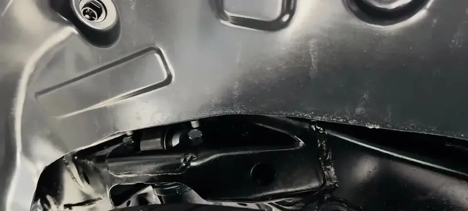 言归正传,哈弗H5最关键的一点:非承载式车身结构,带有大梁,而且后悬挂为整体桥式非独立悬挂。我也把手伸进去确认了,确实是那种很“硬派”的布局。