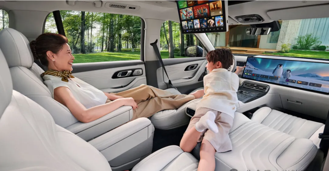 开了这段时间,最直观的感受就是“大气”,不管是外观还是空间,都完全超出我的预期。外观上,它自带一种中正稳重的气场,有人说像理想L9、问界M9,但我觉得它更有自己的特色,银河家族的星汉涟漪贯穿式灯带很有辨识度,我选的双色外观,停在小区里,辨识度拉满,每次出门都能被邻居问起车型和价格。