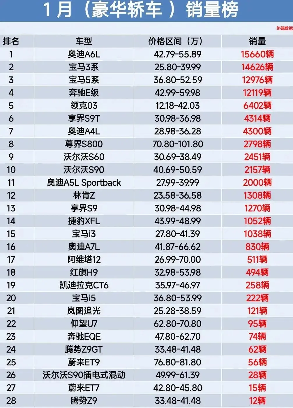 1月豪华车销量榜炸了!奥迪A6L硬生生干到15660辆,直接登顶第一。可我家楼下修车摊的老王,盯着手机里的数据直摇头:“这车卖得欢,我这摊子生意却越来越冷清……咋回事?”