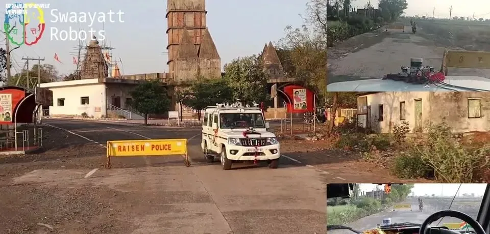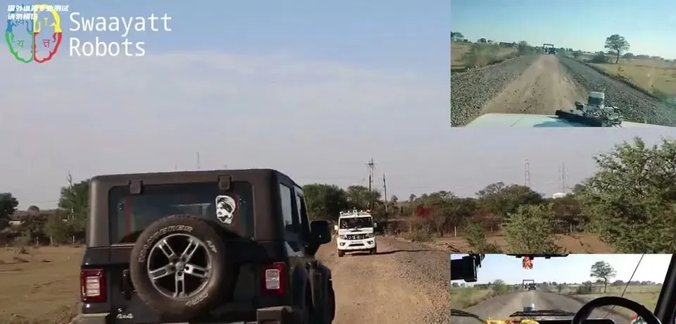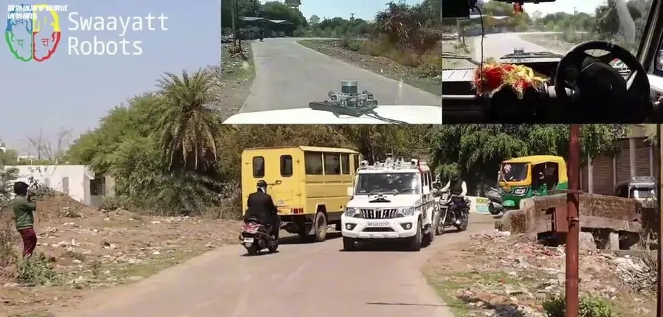 印度自动驾驶汽车在道路上行驶,展示其在复杂路况下的行驶能力。
